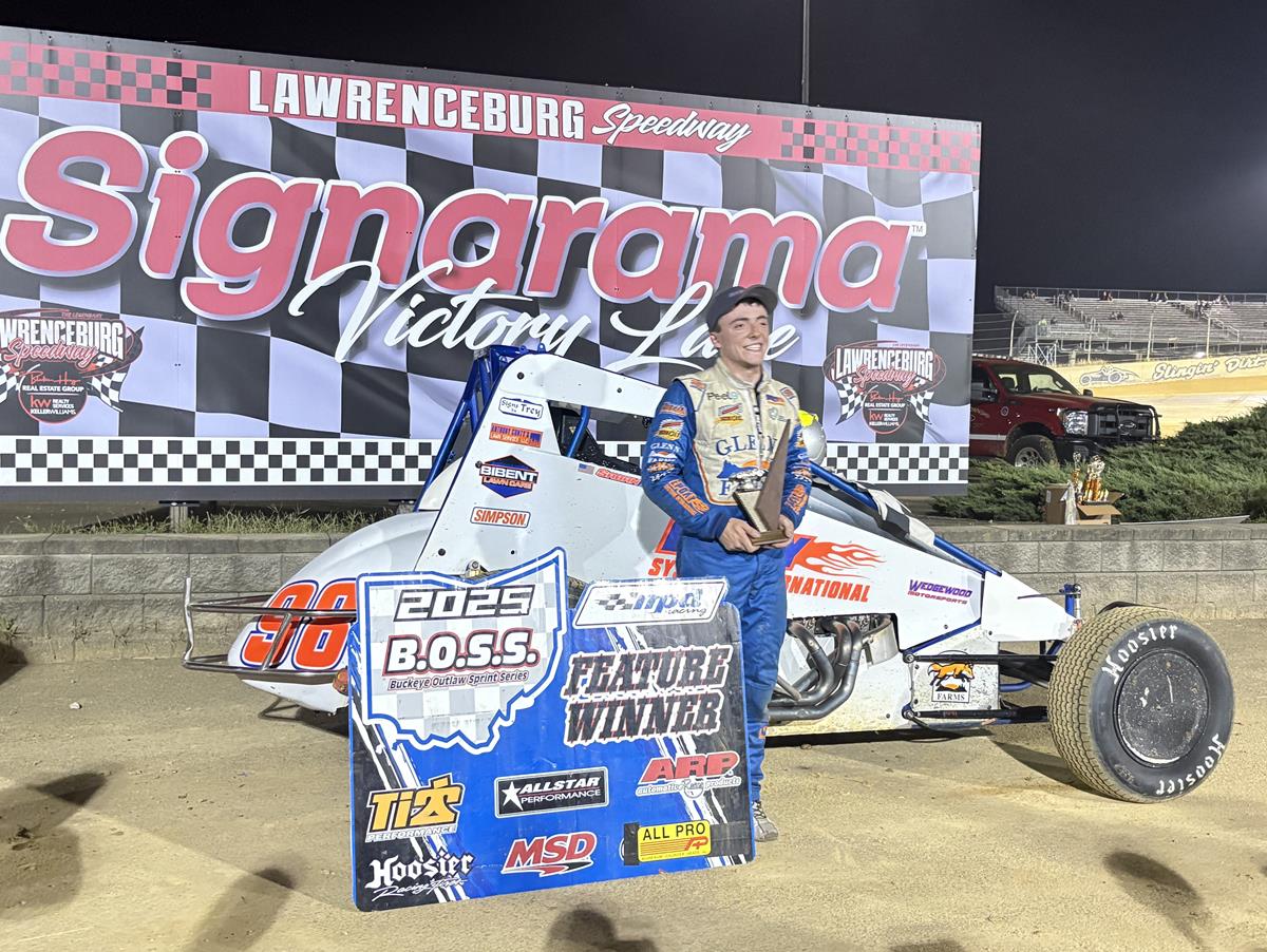 Raced the #98 Epoxy Systems International Sprint to a Dick Gaines Memorial clean sweep tonight at Lawrenceburg Speedway with the Buckeye Outlaw Sprint Series. Was fast qualifier, won my heat, the broke my water pump-thanks Steve for the being there and fixing it and then won the feature by 4.3 seconds! Thanks Wedgewood Motorsports, Doran/Chevy, XXX Race Co, Anthony Conty Lawn Service, Signs by Trey and Daniel Bibent Lawn Care.